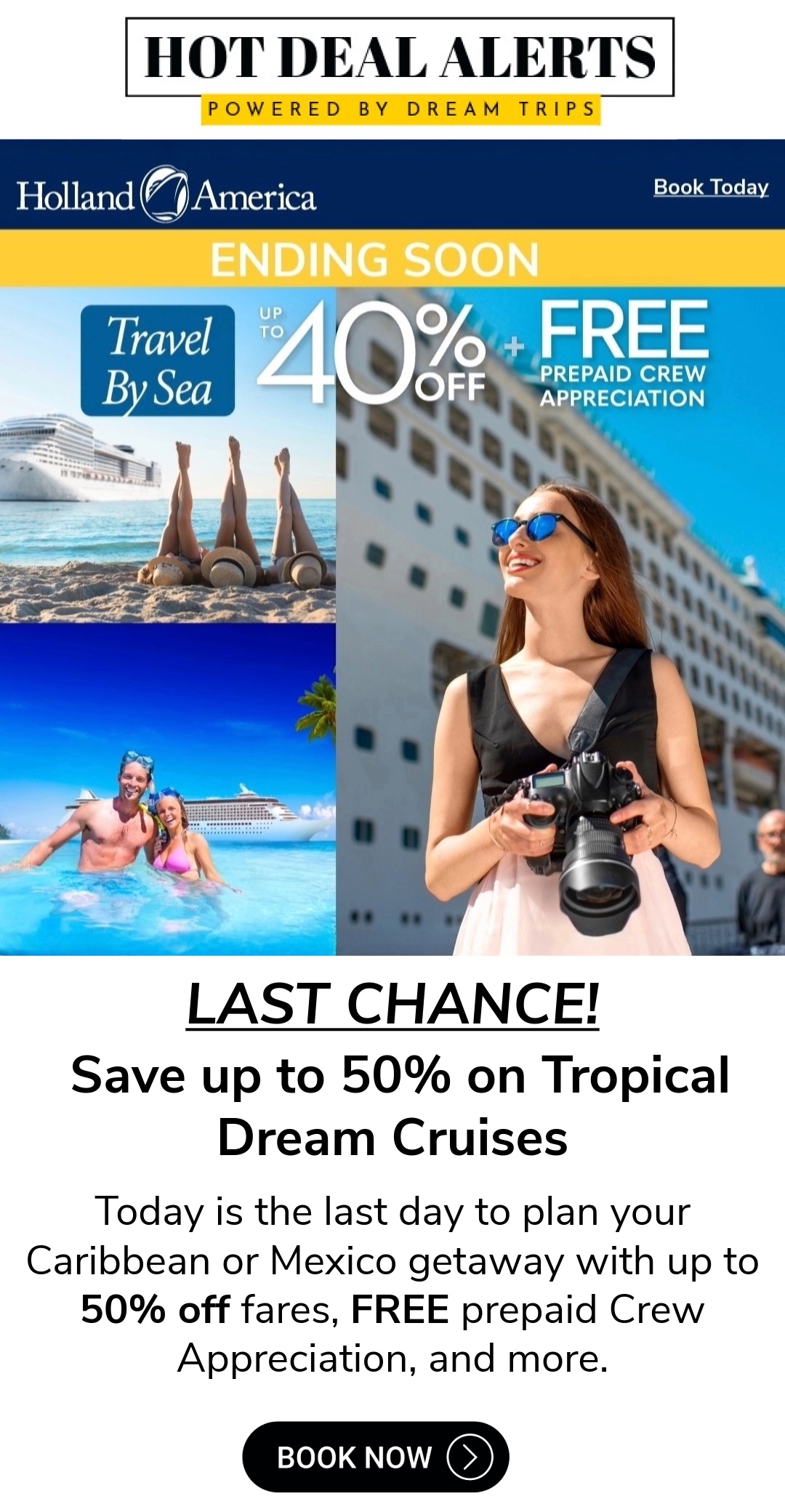 - Last chance to save up to 65% on dream cruise